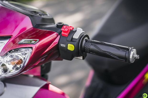 Cánh phải ta có thể thấy thêm cùm công tắc Domino, bên cạnh đó là cùm tăng tốc Uma với hành trình ga được rút ngắn để xe gia tốc nhanh hơn.
