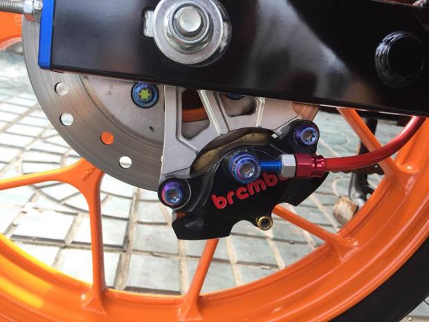 Hệ thống phanh sau được nâng cấp tương tự như bánh lái trước với heo Brembo billet HP quay ngược đầy ấn tượng bởi sự hỗ trợ của pas nhôm CNC.