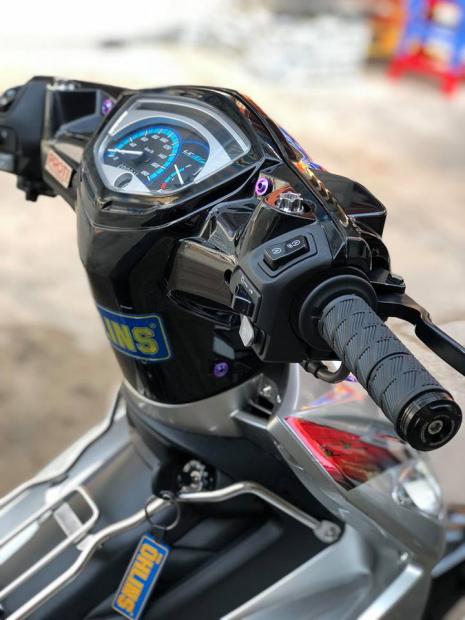 Dàn đầu xe độ được trang bị cùm công tắc NVX có thể lắp vừa nhiều dòng xe PKN của Yamaha nhưng phải câu điện lại, cặp gù dẹp Takegawa CNC nhìn khá đẹp.
