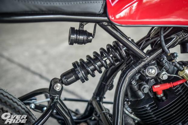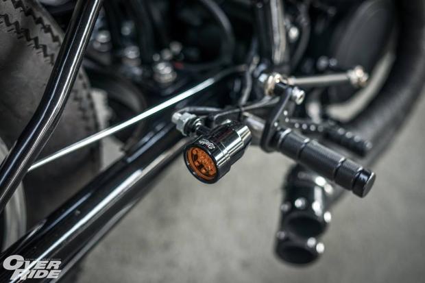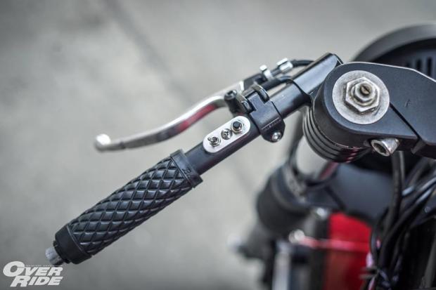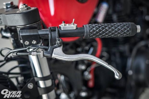 Bộ chảng ba CNC nguyên khối được sơn tĩnh điện cứng cáp, tay lái Clip-on tạo cảm giác hầm hố theo phong cách Cafe Racer.