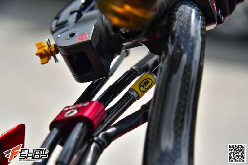Ghi-đông lái được chủ nhân 'phù phép' ốp Carbon fiber tăng vẻ sang trọng.