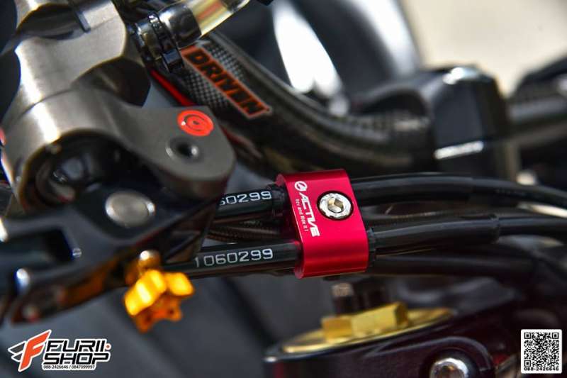 Hệ thống phanh lái trang bị cùm phanh Brembo Billet với núm tăng chỉnh CNC khá bắt mắt.