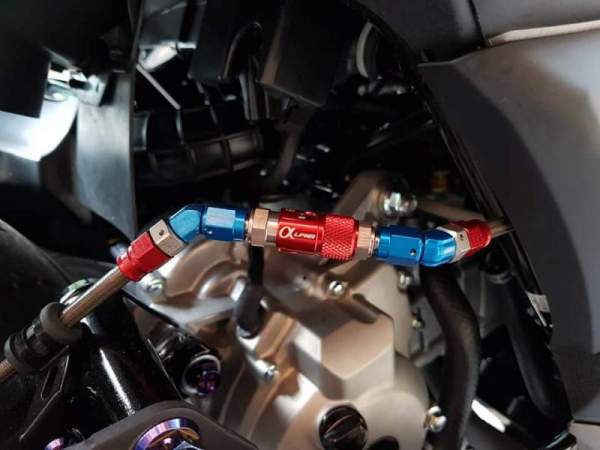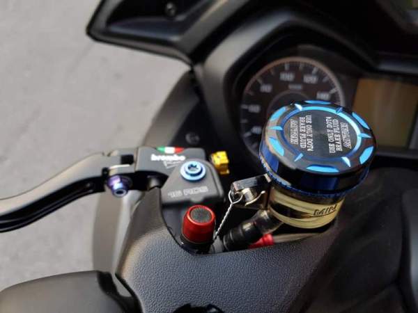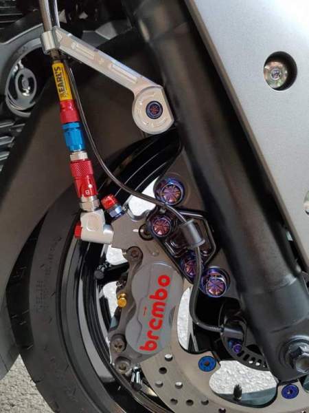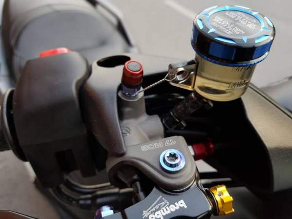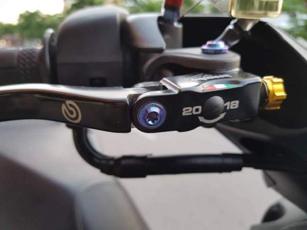 Khá nhiều chi tiết trên ghi-đông lái được sửa đổi như cặp phanh Brembo RCS kết hợp ốc gió Stahblus và chi tiết ốc titanium.
