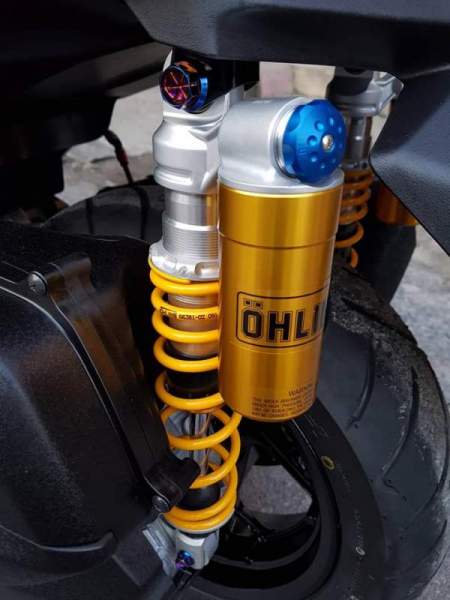 Ngoài ra hành trình nhún sau được tối ưu tuyệt đối nhờ vào cặp giảm shock Ohlins bình dầu rời với khả năng tùy chỉnh cao cấp.