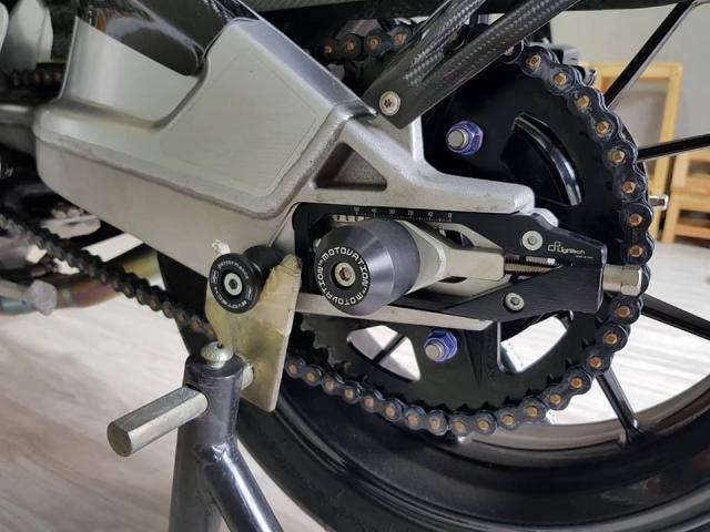 Kết thúc quá trình sửa đổi với bộ tăng sên Lightech, gù chống đổ Motovation, gù nâng bánh Evotech.