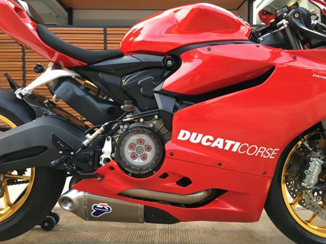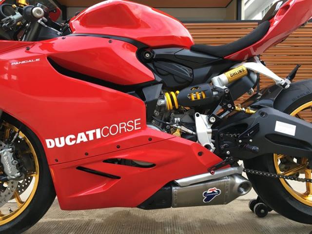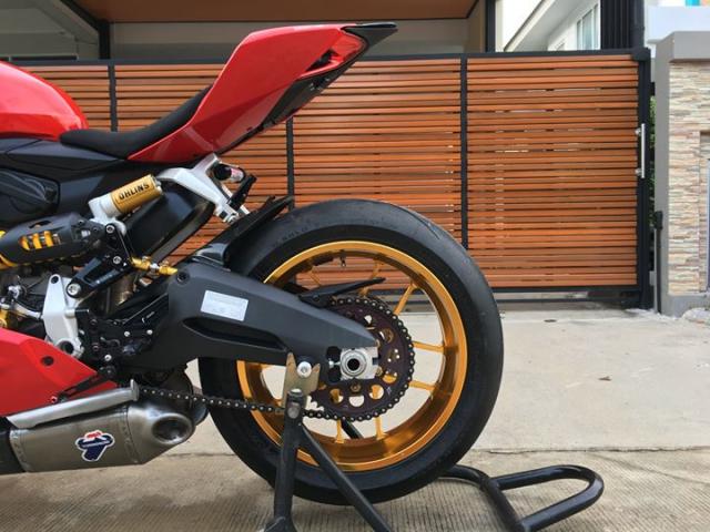 Hệ thống treo sau được nâng cấp lên Ohlins cải thiện hành trình nhún đáng kể so với trang bị tiêu chuẩn được Ducati cung cấp cho 899 Panigale, và nhằm giảm áp lực cho hệ thống côn, chủ nhân đã trang bị thêm bộ trợ côn CNC Racing màu vàng tạo điểm nhấn ngay khối động cơ khép kín. Nâng cao hiệu suất âm thanh cũng như tầng suất động cơ so với tiêu chuẩn ban đầu, chiếc xe được thay đổi hệ thống ống xả đôi Termignoni.