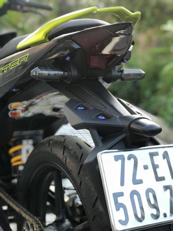 Dàn áo còn được mod lại một số chi tiết như dè sau và bộ demi lưới đến từ đất nước Malay, ngoài ra chủ xe còn mod lại sử dụn dè trước Ex nhỏ để phần nhựa nhám phía sau dài hơn ôm hết bánh hạn chế cát đất rớt vào máy bên trong - Nhìn chân trước còn được trang bị heo dầu Brembo logo lớn 2 pis đối xứng kết hợp cùng đĩa Brembo oro kết hợp cùng thớt lòng CNC.