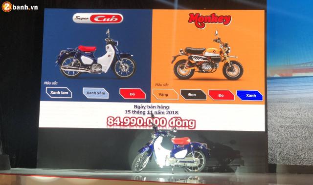 Honda Monkey & Super Cub C125 được nhập khẩu từ Thailand sẽ được phân phối chính thức thông qua các của hàng bán xe do Honda Uỷ nhiệm (HEAD) trên toàn quốc vào ngày 15 tháng 11 năm 2018 với giá 84.990.000 VND. Được áp dụng chế độ bảo hành 3 năm hoặc 30.000km cùng 6 lần kiểm tra định kỳ miễn phí.