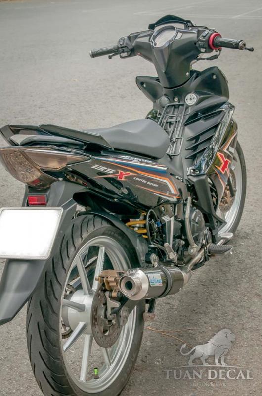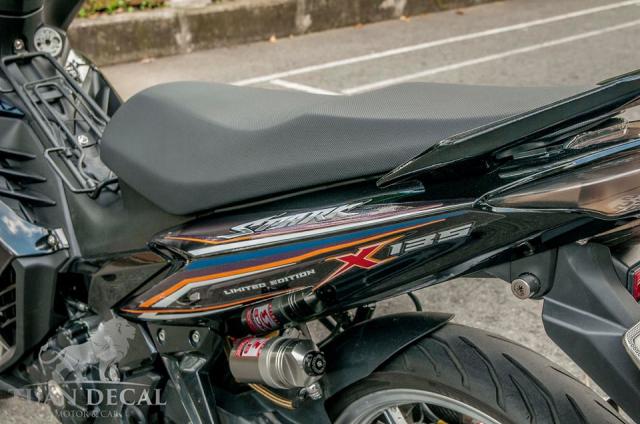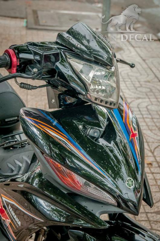 Nếu nói bộ tem là linh hồn cho chiếc xe độ thì các món đồ chơi trên xe đã làm cho thân xác chiếc xe vô cùng ấn tượng - Ở đây ta có thể thấy chủ xe còn trang bị thêm bộ ốp đầu LC135 được order từ Malay tháo ráp như zin không cần thế cháo. Demi Appi của xe là mô phỏng thêm mẫu LC135 2015. Chóa đèn Wiz sẽ giúp xe nổi bật hơn trong đêm nhờ vào bộ đèn led trắng bên dưới.