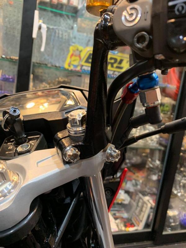 Nếu sử dụng các chú ốc Gr5 để trang trí nghi đông thì đã quá quen thuộc ở đây chủ xe sử dụng ốc Salaya của Thái Lan để làm lạ hơn phần ghi đông của mình. Mẫu ốc này được làm bằng Inox nên cho độ sáng và độ bền cao chống hoen rỉ và có thể dùng chất tẩy rửa đánh bóng khi xuống màu.