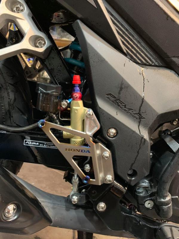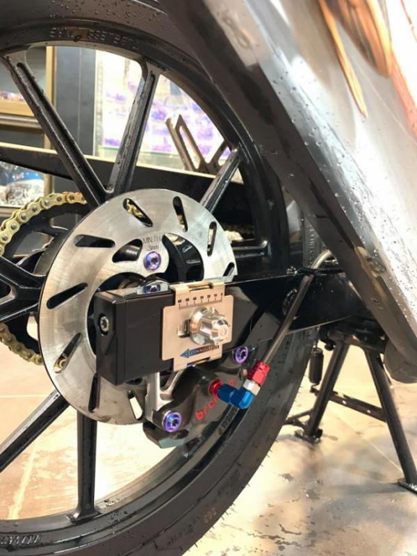 Góc ảnh cho ta thấy toàn cảnh bộ heo dầu Brembo Billet phía sau cũng như cho tiết pat heo được làm xoay ngược nhìn rất hầm hố - Dây dầu được bấm đầu ôm thêm đúng thế heo để tránh tình trạng uốn ép dây quá dẫn tới xì dầu dẫn tới mất thắng rất nguy hiểm khi đang vận hành trên đường.
