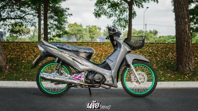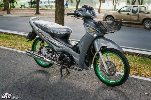 Điểm qua dàn chân là cặp bánh căm mỏng manh với niềng nhôm mang gam màu xanh lá, việc chơi bánh căm niềng nhôm không còn xa lạ gì nữa với những anh em biker ở Thailand, họ thích phong cách này bởi nó sẽ giúp trọng lượng xe giảm xuống đáng kể để gia tốc nhanh hơn. Hệ thống phanh được nâng cấp với đĩa đồ chơi kết hợp cùng heo Brembo Billet 4 pis qua sự hỗ trợ của pas nhôm CNC gia công từ máy cho độ chính xác cực cao.