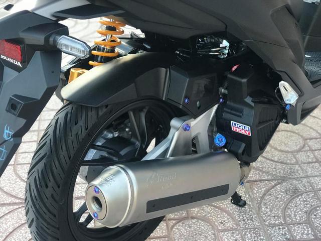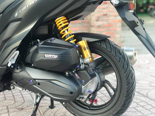 Những chi tiết xung quanh lốc máy và lộc gió điều được cố định bằng ốc Gr5 điện phân lên màu Titan, ngoài ra sau thời gian dài sử dụng nhàm chán anh em có thể điện phân lại lên các màu khác - Trang bị thẳng cây phuộc Ohlins bình dầu rời để tăng tính thẩm mỹ và khả năng giảm xóc cho chiếc - thông thường anh em chơi Ohlins sẽ thấy ở phần chân có một núm chỉnh cnc cho phép người dùng kiểm soát độ nhún nhảy của chiếc xe khi tải nặng hoặc đi một mình.