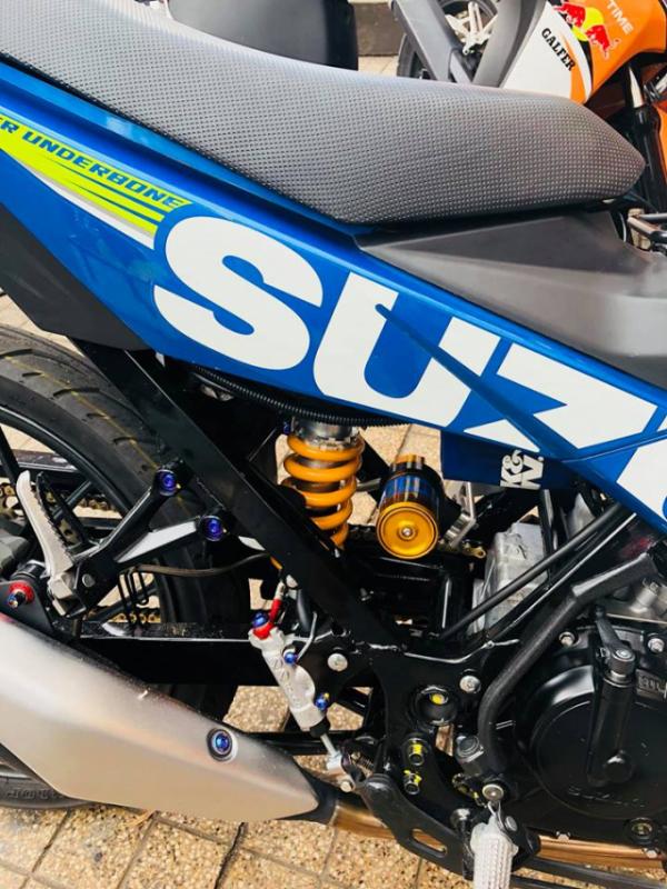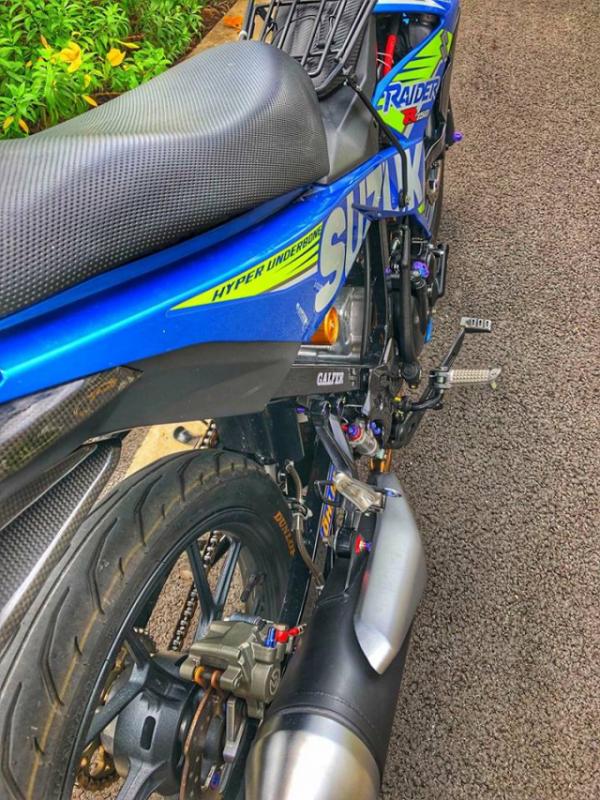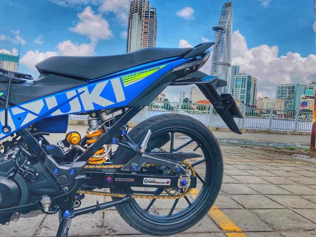 Dàn bóng của xe vẫn được giữ nguyên zin như những ngày đầu xuất xưởng tuy nhiên phần xi nhan rời đã được chủ xe mod lại theo phong cách Satria 150 Indo để xe trông gọn gàng cân đối hơn khi nhìn từ phía sau - một chi tiết nhỏ ở dè sau cacte, ốp che sườn điều được ốp Carbon Fiber, một chất liệu đắt nhất nhì hiện nay trên một chiếc xe.