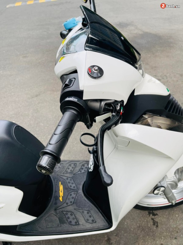 Nằm lọt thỏm giữa dàn tay lái đen tuyền của chiếc SH độ là cùm ga Domino hai dây ga dưới đồng màu, vừa xuất hiện như một điểm nhấn mà còn có thể rút ngắn hành trình ga để đem tới cảm giác lái bốc hơn. Khi xuất hiện trên dàn tay lái chiếc SH độ, dù giúp cho vị trí này trở nên đẹp mắt nhưng mình tin rằng nếu chủ nhân lắp đặt thêm công tắc Daytona ở bên trái nữa thì dàn tay lái này sẽ còn trông cuốn hút và hấp dẫn hơn nhiều.