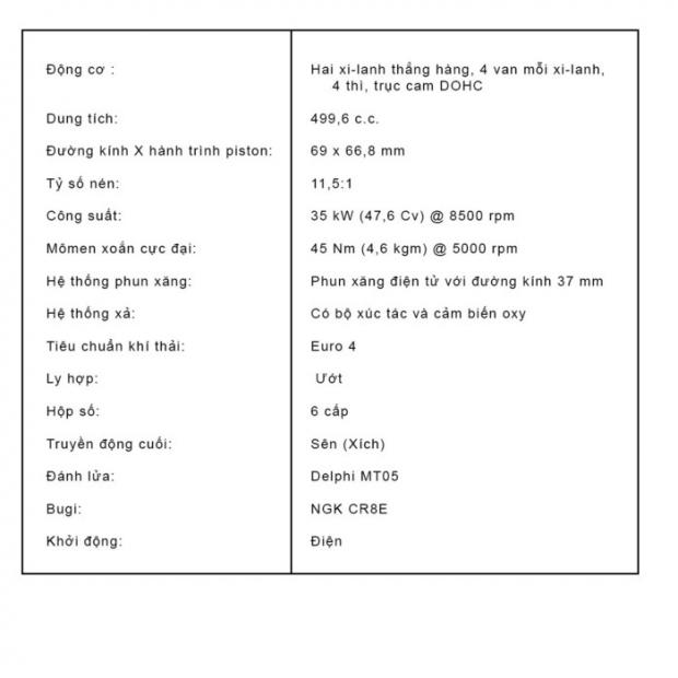 Cung cấp sức mạnh cho TRK 502 là khối động cơ DOHC xy-lanh đôi 8 van làm mát bằng dung dịch dung tích 499,6cc, phun xăng điện tử đem lại công suất tối đa 47 mã lực tại 8.500 vòng/phút cùng mô-men xoắn cực đại 45Nm tại 5.000 vòng/phút, sức mạnh được truyền tải qua hộp số 6 cấp.
