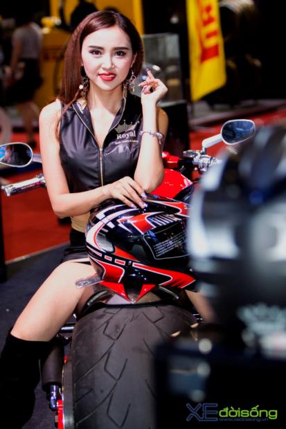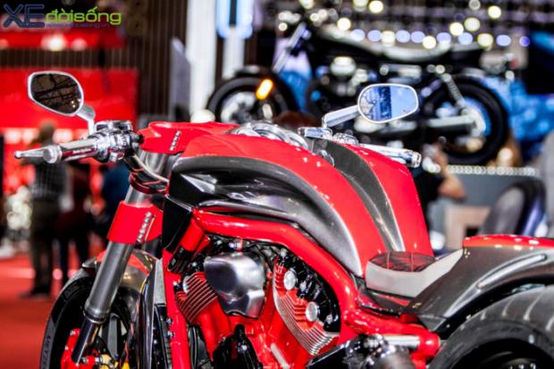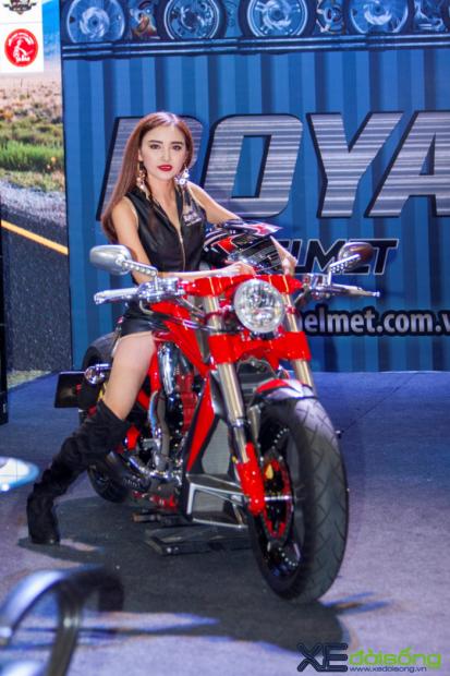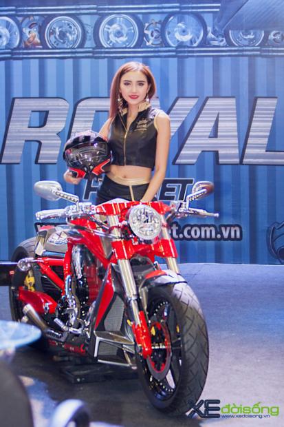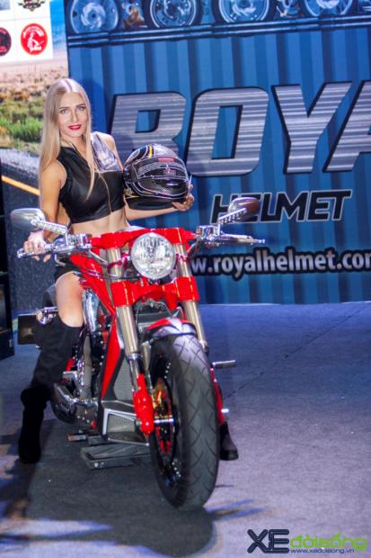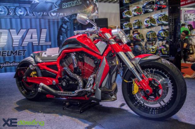 Triển lãm môtô xe máy Việt Nam 2017 ngoài 10 hãng xe lớn tham gia còn có sự góp mặt của 55 gian hàng phụ trợ khiến sự kiện diễn ra hết sức sôi nổi và cuốn hút. Mỗi gian hàng đều trưng bày những sản phẩm riêng của mình và 'show' thêm những mẫu xế độ bắt mắt. Tại gian trưng bày mũ bảo hiểm Royal có sự xuất hiện của 'huyền thoại' cơ bắp Mỹ - Harley-Davidson V-Rod Muscle. Điều đặc biệt là chiếc xế khủng này đã được độ lại với vẻ ngoài hầm hố đậm chất chơi.