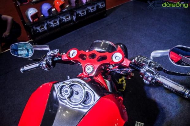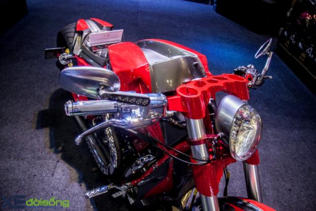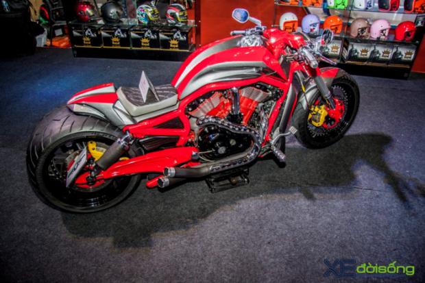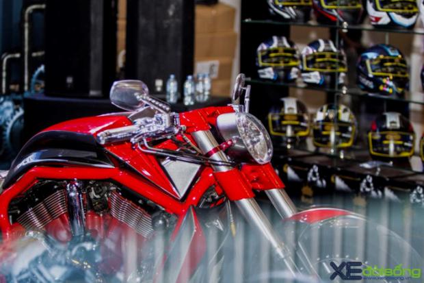 Toàn thân xe đi tông màu đỏ rực cuốn hút, ghi đông được tinh chỉnh lại với cùm CNC, hệ thống ghi đông theo dạng Clips-on thể thao, bánh sau 'big size' hầm hố cùng nhiều tinh chỉnh ở vị trí bình xăng khiến V-Rod trở nên hung hãn hơn những gì mà Harley-Davidson đã mang lại.