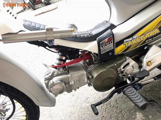 Tuy nhiên, đặc điểm 'khủng' nhất trên chiếc Dream này đó là nó đã được chủ nhân thay nguyên cục máy Takegawa Superhead +R, đi kèm với chế hòa khí Yoshimura và cổ pô titan Over Racing. Chỉ riêng khối máy được nhập từ Nhật Bản này đã tiêu tốn của chủ xe tới 120 triệu đồng.