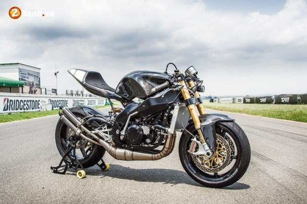 Bình xăng được phủ Carbon fiber, cụm đồng hồ CNC, ghi-đông CNC hạ thấp đậm chất Streetfighter.