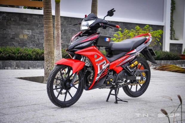 Khoác cho mình bộ cánh mạnh mẽ với 2 màu ' đỏ đen ' đậm chất thể thao , nhìn tổng quan con chiến mã dưới đây thật sự cuống hút với các món đồ chơi kiểng bắt mắt được trang bị trên xe .