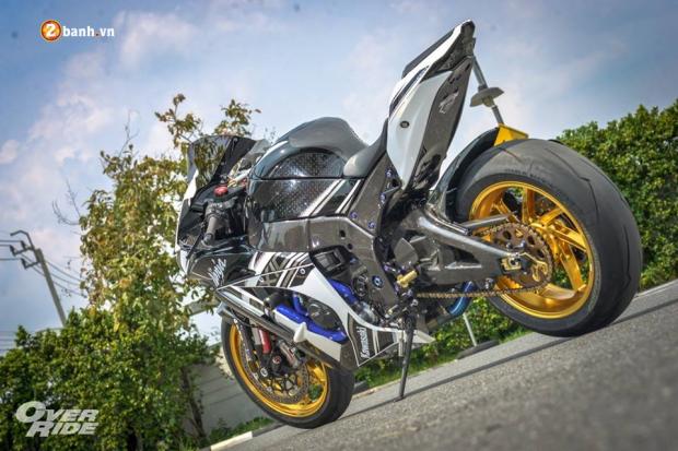 Vẫn giữ ngôn ngữ thiết kế hầm hố, góc cạnh nhưng ZX10R 2016 có nhiều thay đổi hơn ở phần đầu và đuôi xe, sở hữu tone màu đen trắng chủ đạo với những họa tiết kéo dài đậm chất thể thao kèm theo cặp mâm hợp kim Marchessini vàng Gold nổi bật