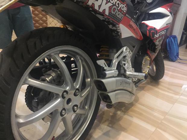 Xe độ lại phuộc trước phong cách Upside down với phần chân cnc bình dầu nhỏ bá đạo, đi kèm heo dầu Brembo 2pis đối xứng, tay thắng Racingboy, đèn mắt cú