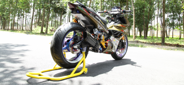 Exciter 150 được độ dàn chân cực khủng mâm yamaha YZF-R1 được sơn airbrush tại ABMiracle cùng đó là gấp yamaha R6 và Pô Mivv óp carbon, Cổ Pô full Titanium