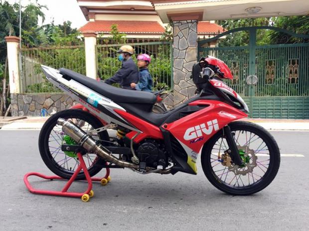 Xe được đi tông màu trắng đỏ phá cách, do xe được độ máy là chính nên nhiều chi tiết được bỏ đi cho xe cực nhẹ và lướt gió một cách tốt nhất.