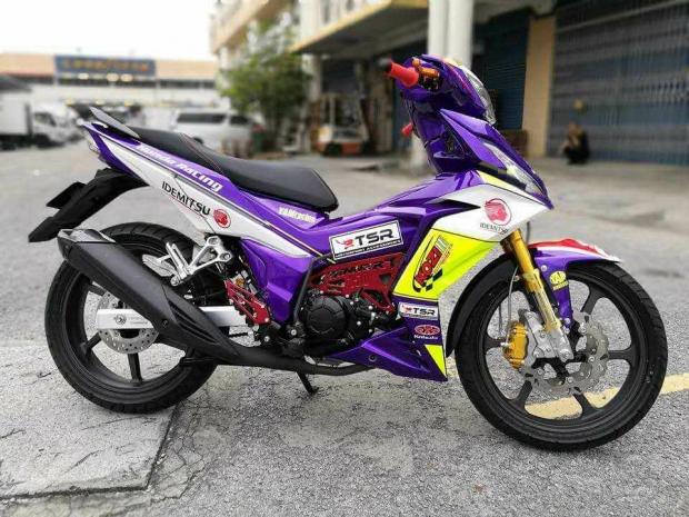 Dàn chân đầy cứng cáp với hệ thống Upside down tích hợp miếng bảo vệ CNC ánh vàng cực đẹp . Mâm Kozi 6 cây tích hợp 2 đĩa Galfer khiến bánh lái trước trở nên hầm hố . Heo Aledin ánh vàng nổi bật cùng dây dầu kiểu .