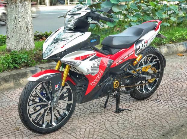 Phong cách tem phối giữa màu trắng đỏ thêm tông đen làm điểm nhấn làm chiếc Exciter 150cc cực nổi bật với nhiều đồ chơi tăng thêm cho xe phần phá cách và hầm hố.