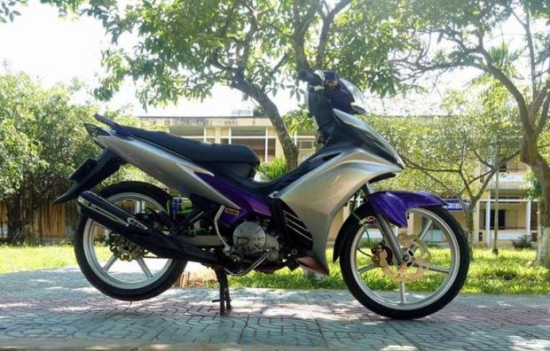 Dàn chân đầy cứng cáp với mâm Racing boy 5 cây cùng đĩa Galfer , dây dầu Morin nổi bật với màu xanh lá , cánh trái ở phần lốc máy thu hút ánh nhìn bởi ốc mâm lữa Titan , cần số 2 chiều cũng được trang bị giúp việc sang số thoải mái hơn .