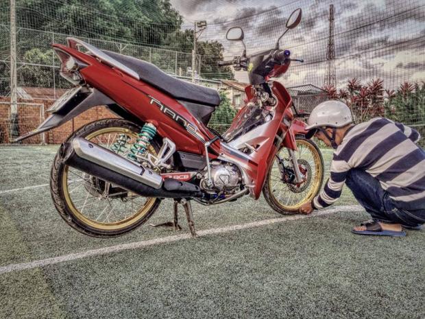 Xe độ lại kính Spark, ổ khóa của người anh Exciter, niền nhôm + đĩa kiểu làm cho chiếc xe thêm phần bắt mắt