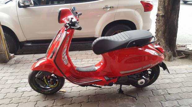 Vespa Primavera độ đậm chất chơi bên cạnh các món đồ chơi kiểng được lắp trên xe, dàn chân được độ lại từ Vespa Sprint thể thao hơn.