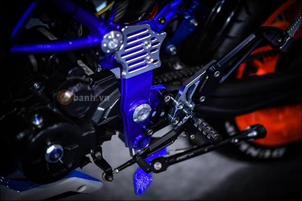 Sử dụng gắp sau đôi kết hợp dàn chân nổi bật cùng vành mâm sau cam chói lòa cùng phanh kẹp brembo kết hợp pát nhôm CNC tinh tế