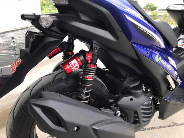 NVX 155cc này ngoài phần đĩa trước Racingboy thì phuộc sau bình dầu rời Racingboy đã lắp đầy khoảng trống dưới gầm xe hầm hố
