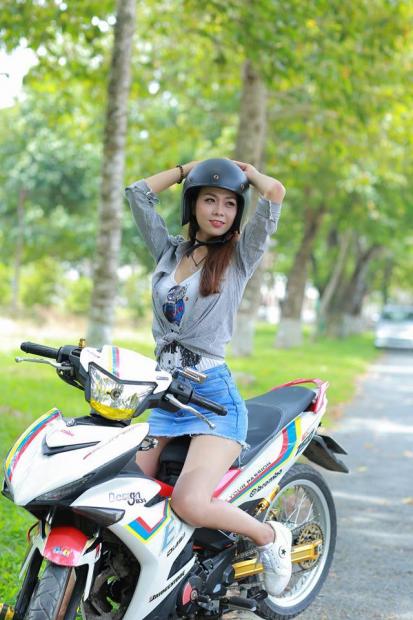 Bộ ảnh cô nàng đáng yêu đọ dáng cùng Exciter 150 độ kiểng