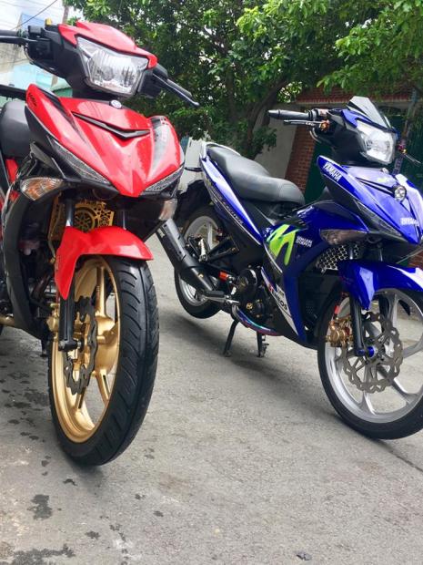 Xe thay dĩa bông 260mm, thay dè trước Exciter 135 có đuôi dài hơn chắn bớt sình vào lốc máy, cổ pô lên màu titan, ốp pô bọc carbon fiber