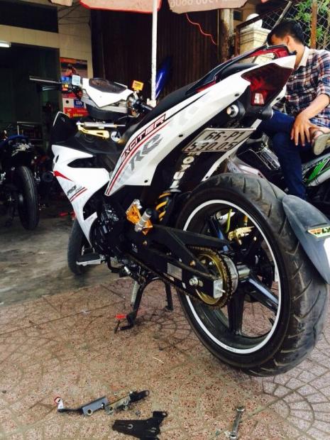 Exciter độ lại nắp nhớt Racingboy, gác chân Biker, cổ pô Inox và hơi thở pô Akrapovic