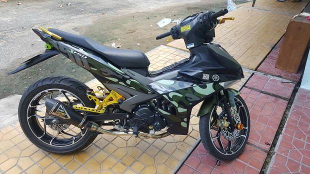 Khoác cho mình phong cách Camo đặc trưng riêng của các người lính bộ binh, được coi là một trong các phiên bản đặc biệt của dòng xe Exciter 150 này khi được Yamaha tung ra thị trường, càng trở nên cứng cáp hơn với nhiều đồ chơi đi cùng anh em cùng xem qua