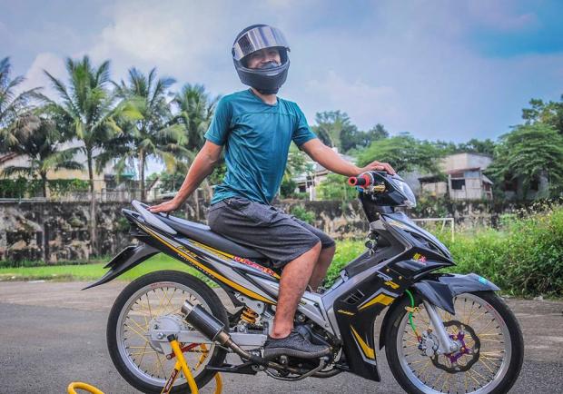 Nói về phía Exciter 135 5 số thì ta có kính Yaz, mâm Raider, phuộc Racingboy bình dầu, đặc biệt nhất là khoác cho mình phong cách tem malay Crom