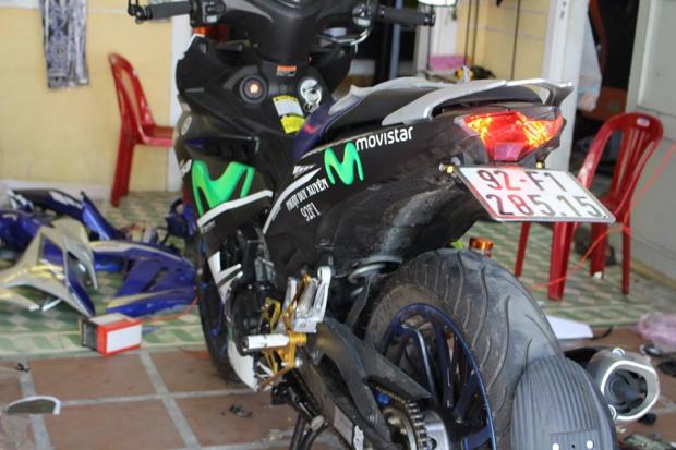 Chiếc Exciter 150 độ của Biker Đà Nẵng sở hữu một bề ngoài zin, được tân trang lại = phong cách Movistar đen với sự nỗi bật là chử M xanh lá lớn. Chiếc xe độ lại ngoại hình đầy ấn tượng và bắt mắt hơn, gợi nhớ đến các phiên bản được độ áp dụng cho trường đua