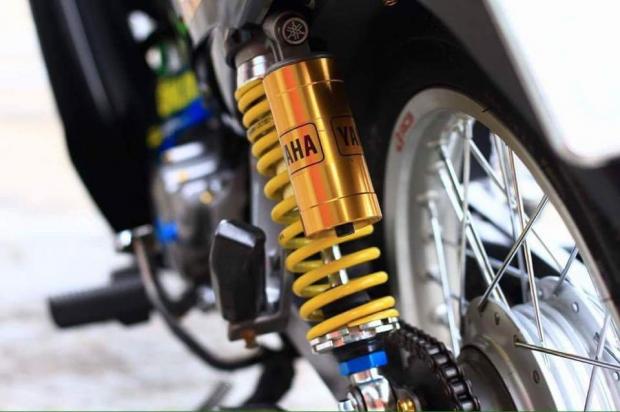 Khoác cho mình bộ cánh tem đấu đậm chất thể thao với con số 46 , phần yên được gọt lại với kiểu dáng góc cạnh hài hòa tăng sự thẩm mỹ cho xe , Dàn chân mỏng manh nhưng không kém phần cứng cáp với niềng Racing boy , lốc máy tạo điểm nhấn với ốc mâm lửa Titan .