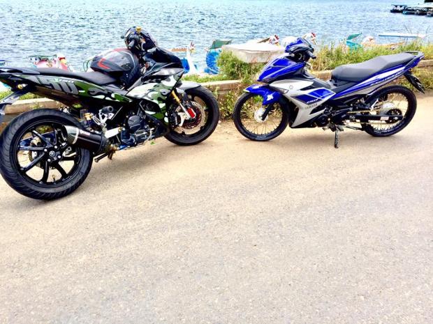Góc ảnh này đẹp thì được nhắc đến quá nhiều rồi bây giờ xin bình luận tý về đồ chơi, với phiên bản Exciter Camo thì được trang bị gắp N, phuộc Racingboy bình dầu rời, gác chân Raider, xe đen ta có cổ pô Titan, đĩa Galfer