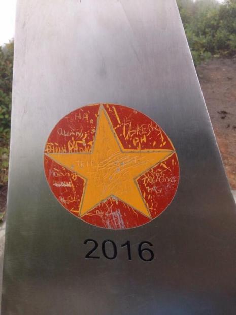 Không chỉ riêng chóp núi Bà Đen bị đạp méo, những hình ảnh về chóp Chiêu Lầu Thi trên độ cao 2402m (ở Hoàng Su Phì, Hà Giang) cũng bị vẽ bậy chi chít khắp các mặt chóp.