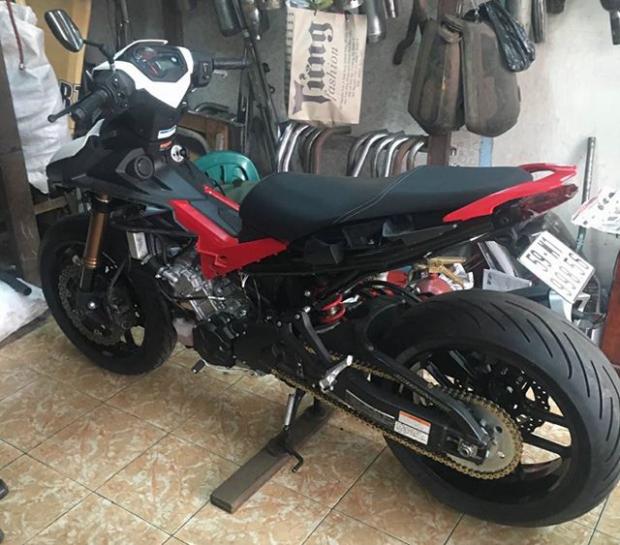 Với tổng thể dàn áo trên gần như được giữ nguyên theo nhà sản xuất. Nhưng với dàn chân to lớn đủ làm Exciter 150 dưới đây trở nên khác lạ hầm hố hơn không thua kém gì các dòng PKL hiện đại hiện nay, nhờ sự tiến bộ của kỹ thuật hiện nay nên việc chế cháo các dòng xe này đã không còn khó khăn như trước