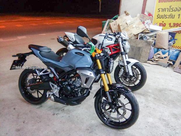 Honda CB150R 2018 tuy mới ra mắt chưa đầy 1 tháng, nhưng tại Thái Lan CB150R đang cơn sốt trong cộng đồng bỉker. Tại Việt Nam, như motosaigon đưa tin trước đây, Lô hàng CB150R đầu tiên sẽ sớm cập bến với giá bán hơn 100 triệu đồng, do các cửa hàng tư nhân nhập về. Cùng Moto Saigon soi chi tiết thiết kế ngoại hình của CB150R so với Ducati Monster 795.