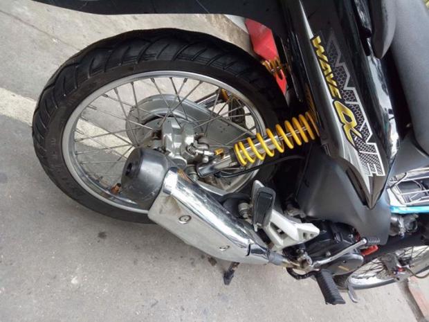 Xe được độ lại thắng đĩa sau + thêm phuộc Nice vàng một sản phẩm gần như được nhiều bạn chơi xe Wave ưa chuộng.