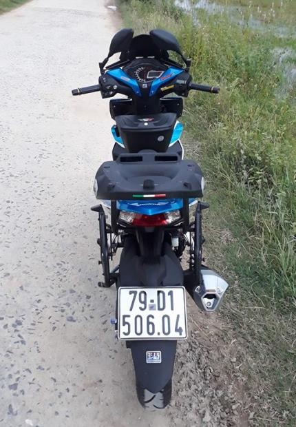 Khoác cho mình bộ cánh nguyên thủy đầy trẻ trung với màu ' xanh trắng ' , phần yên được gọt lại với kiểu dáng góc cạnh hài hòa đầy thẩm mỹ .