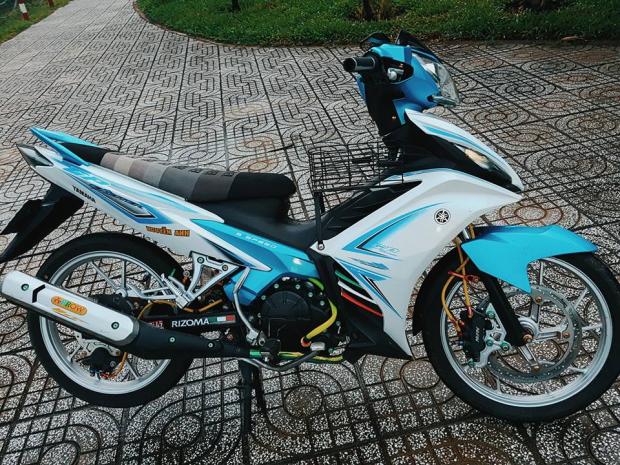 Đầu tiên, chủ xe đã thay thế cho chiến mã mình một vẻ ngoài mới lạ hơn với tông màu xanh trắng hài hòa, bộ tem hơi hướng giống phiên bản tem zin 2011 nhưng được họa tiết lại đầy mới mẻ. Kèm theo sự thay đổi ấn tượng về dàn chân.